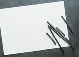 A3 Sketchbook, one conte stick (black), woodless charcoal pencils, kneadable eraser, vinyl eraser, willow charcoal and a rag.